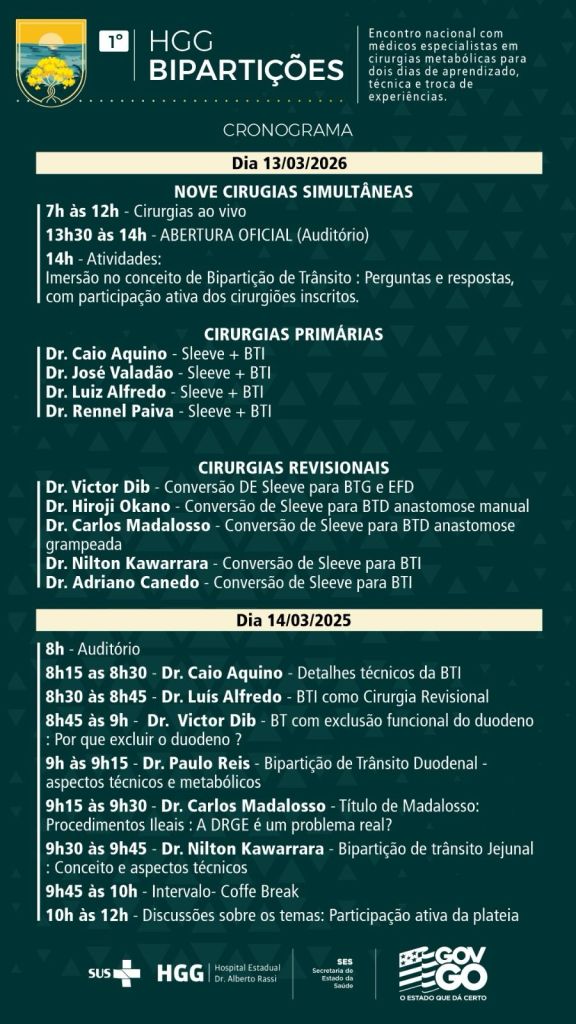 O Dr. Hiroji Okano participará do HGG Bipartições operando ao vivo mostrando aos cirurgiões do curso a cirurgia de bipartição intestinal.